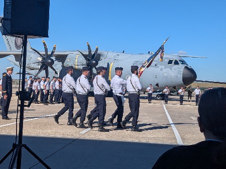 La cérémonie, présidée par le Major général de l'armée de l'air, fut l’occasion de décorer les aviateurs et personnels les plus méritants, devant l’Escadron au grand complet.