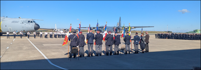 Comme convenu au briefing, le 105 quitte le sol salonais à 8h30 pour rejoindre la célèbre base aérienne 123 d'Orléans-Bricy où nous sommes invités pour célébrer les 80 ans de l'Escadron de Transport 3/61 Poitou.